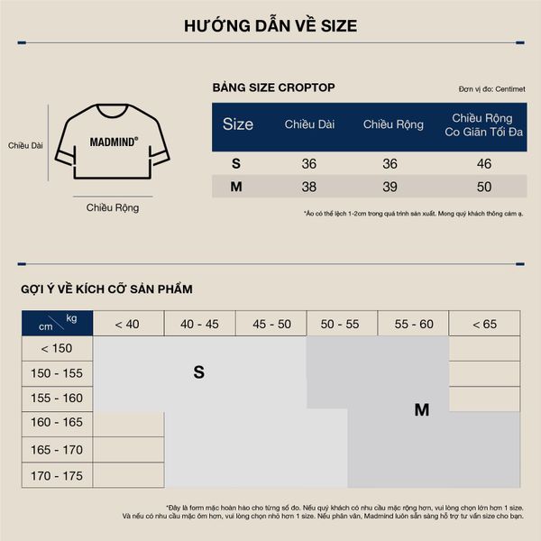 + Madmind luôn để bảng size ở phần thông tin. Nếu bạn phân vân, hãy inbox ngay cho shop để được tư vấn kĩ hơn nhé.