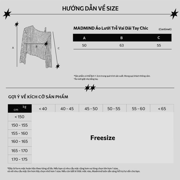 + Madmind luôn để bảng size ở phần thông tin. Nếu bạn phân vân, hãy inbox ngay cho shop để được tư vấn kĩ hơn nhé.