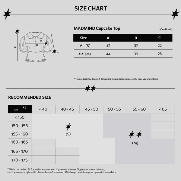 Áo Cupcake: Size S: (40KG - 50KG), M: (50KG - 65KG)